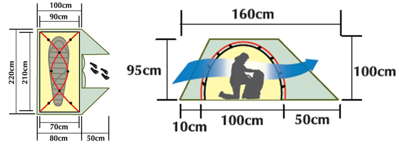 1-2. Model: Mummy Weight: 1,060 g. Size: 220 x 80 (L x W) cm. Body
